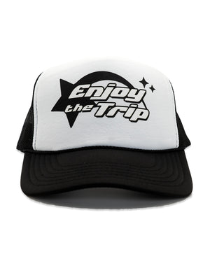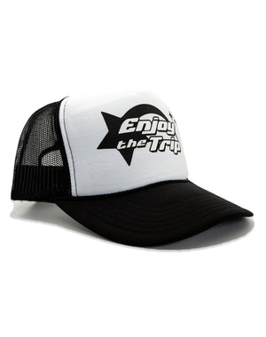 A classic, 5-panel Trucker Snapback. This one-size-fits-all cap features an adjustable snapback and our throwback Enjoy the Trip 'Popstar' design printed on the front.